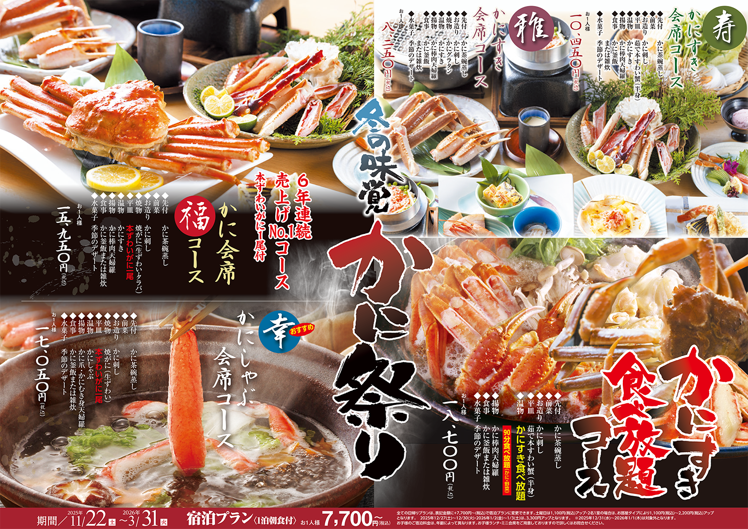 その他にもかに会席をご用意しておりますので、詳細は以下のパンフレットをご参照ください。